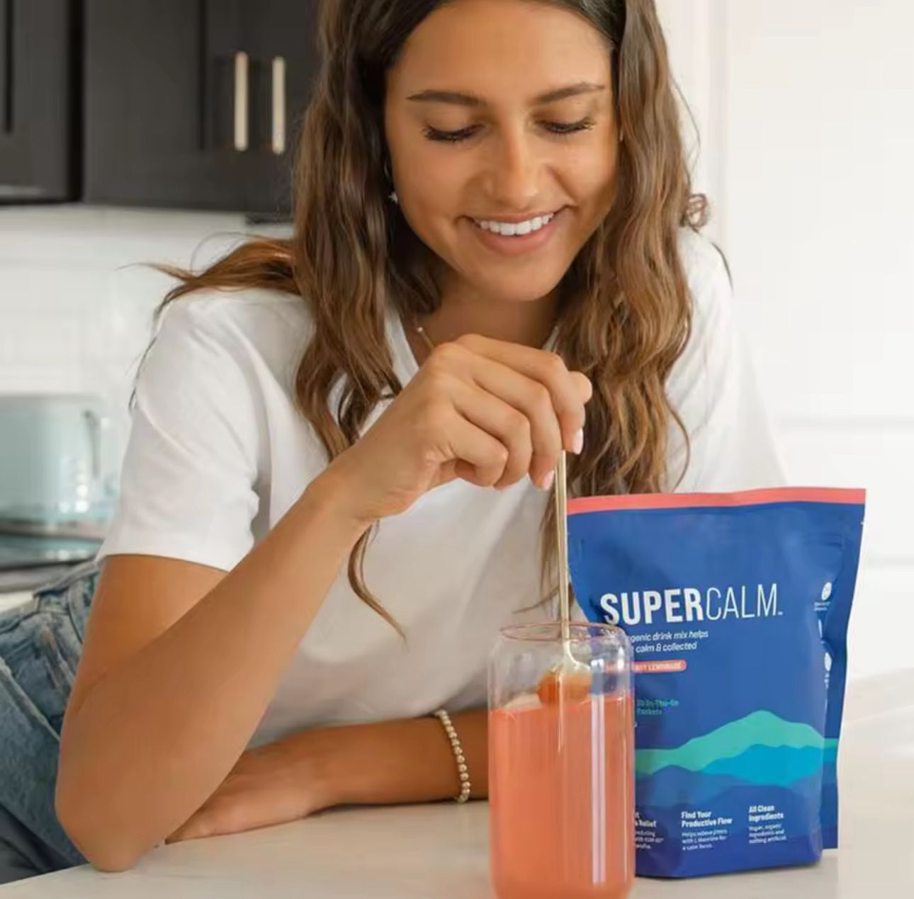 Versez votre sachet de SuperCalme dans un verre d'eau, remuez avec le mélangeur électrique fourni et ressentez une sérénité immédiate. Transformez chaque gorgée en un moment de sérénité absolue.